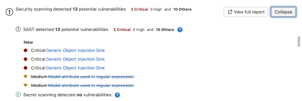 NOTE: To get the most updated vulnerability information on existing vulnerabilities you may need to re-run the default branch's pipeline.